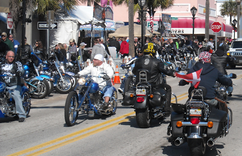 • A cute little blond girlie with large mammaries, sidles up to me as I was donning my gear after quaffing a cold beer and asks “Would you take me for a ride on your bike?” Duh!